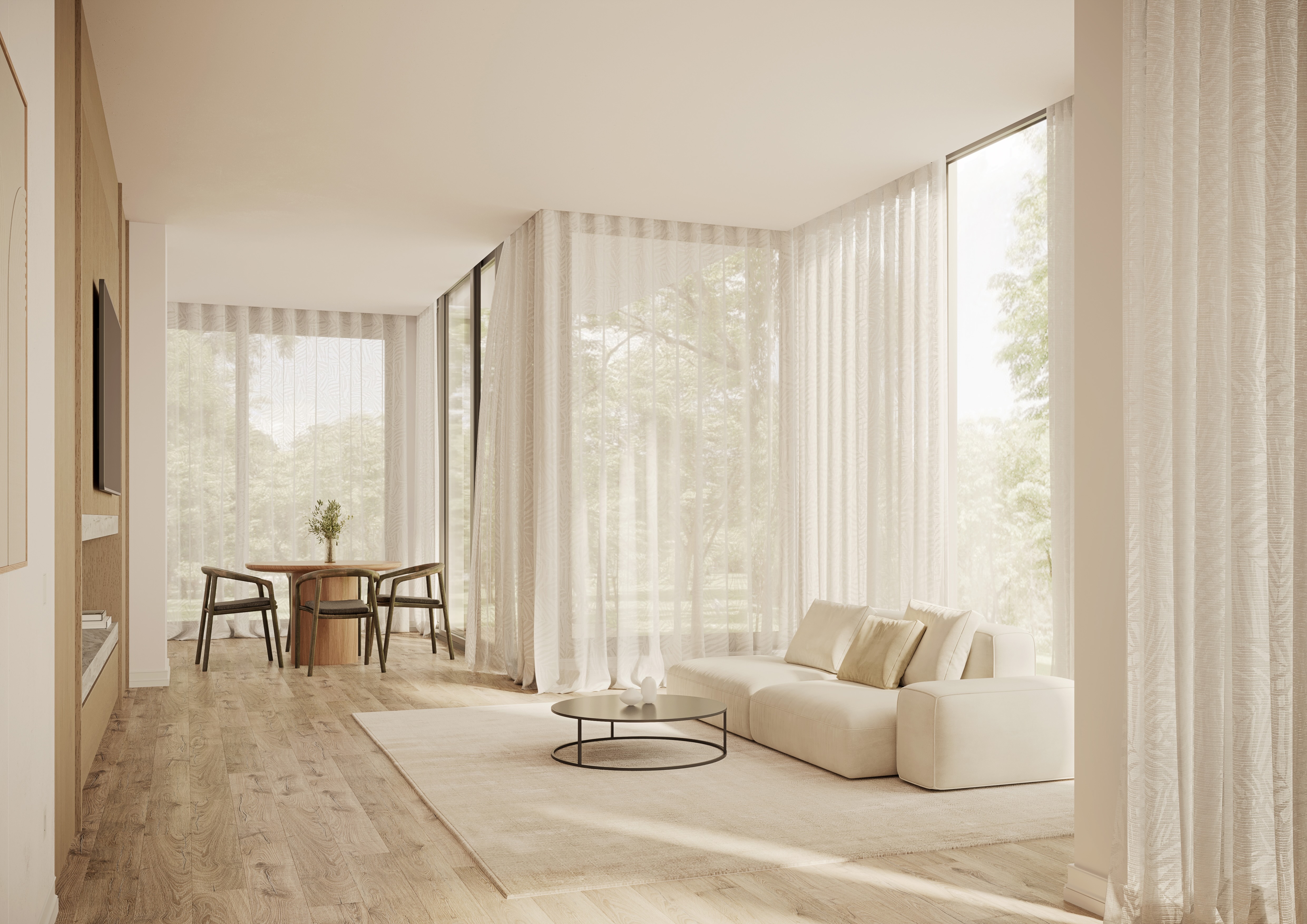 Hauchzarte Stoffe, die das Tageslicht sanft filtern und dennoch den Blick nach draußen erlauben.