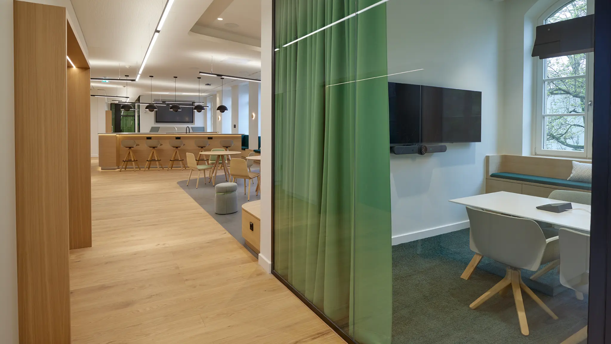 Wir unterstützen Sie dabei, Geschäftsräume zu gestalten, die Professionalität ausstrahlen und gleichzeitig eine Atmosphäre schaffen, in der Konzentration und Kreativität Hand in Hand gehen.